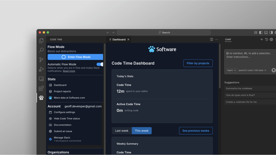 Code Time is a code editor and IDE extension that helps developers improve focus and stay in flow. To get started, find your editor and install Code Time.